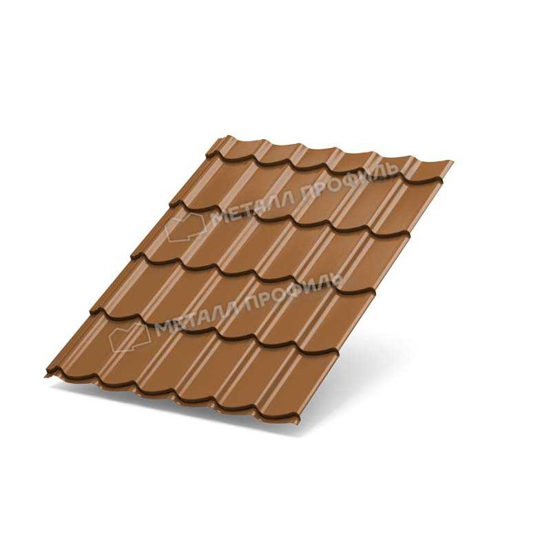 Металлочерепица с покрытием PURMAN® в оттенке Argillite Медный металлик представляет собой надежный кровельный материал от компании Металл-Профиль. Модель Супермонтеррей с толщиной 0,5 мм сочетает эстетику классической черепицы и современные технологии защиты. Этот продукт идеален для долговечной и стильной крыши, устойчивой к погодным воздействиям.