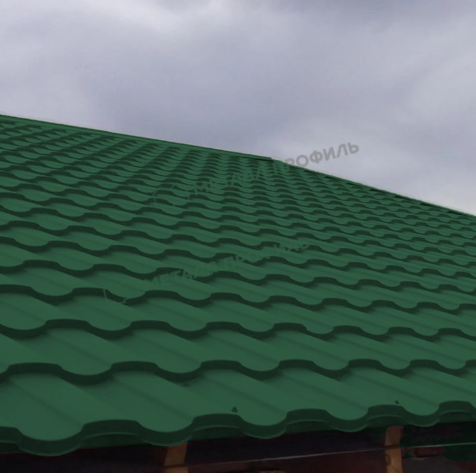 Профиль имитирует форму натуральной черепицы с плавными волнами, что придает крыше элегантный вид. Высота волны и шаг обеспечивают удобство монтажа и отличную гидроизоляцию.