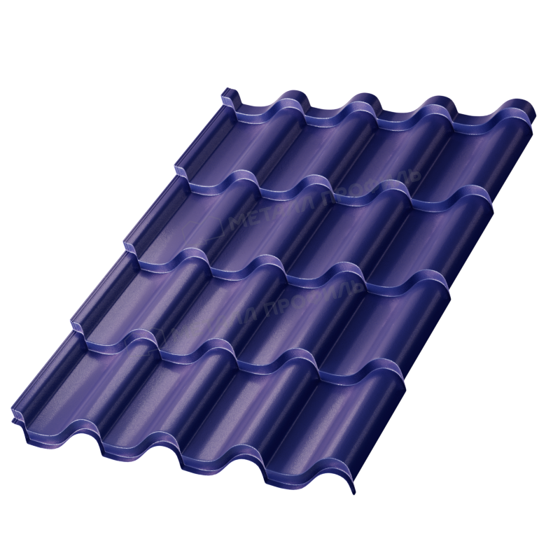 Металлочерепица Монтерроса-S с покрытием PURMAN® Citrine в темно-синем цвете представляет собой надежный кровельный материал толщиной 0,5 мм от компании Металл-Профиль. Этот продукт сочетает эстетику классической черепицы с прочностью металла, обеспечивая долговечность и стиль для вашего дома.