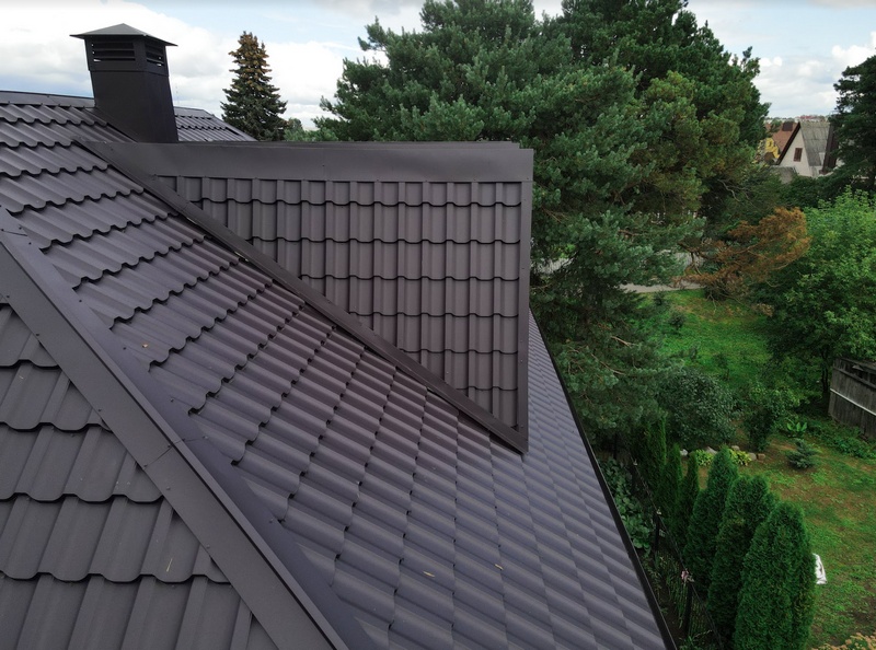 Профиль Трамонтана-XL характеризуется увеличенной шириной волны и высотой ступеньки, что придает кровле выразительный рельеф, имитирующий классическую керамическую черепицу. Полезная ширина листа — 1100 мм, общая — 1190 мм, с высотой волны 25 мм. Такая геометрия обеспечивает повышенную жесткость конструкции, минимизируя деформации под нагрузкой. Профиль адаптирован для монтажа на скатах с углом от 12 градусов, что делает его универсальным для большинства крыш. В цвете RR 32 он выглядит особенно элегантно, подчеркивая архитектурные особенности здания.