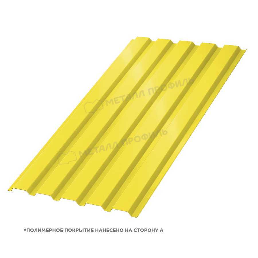 Профлист МП-35 с толщиной 0,45 мм и покрытием полиэстер в цвете RAL 1018 (желтый цинк) от компании Металл Профиль представляет собой надежный материал для кровли и фасадов. Он сочетает прочность оцинкованной стали с эстетичным внешним видом, обеспечивая долговечность и защиту от коррозии. Идеален для строительства в различных климатических условиях.